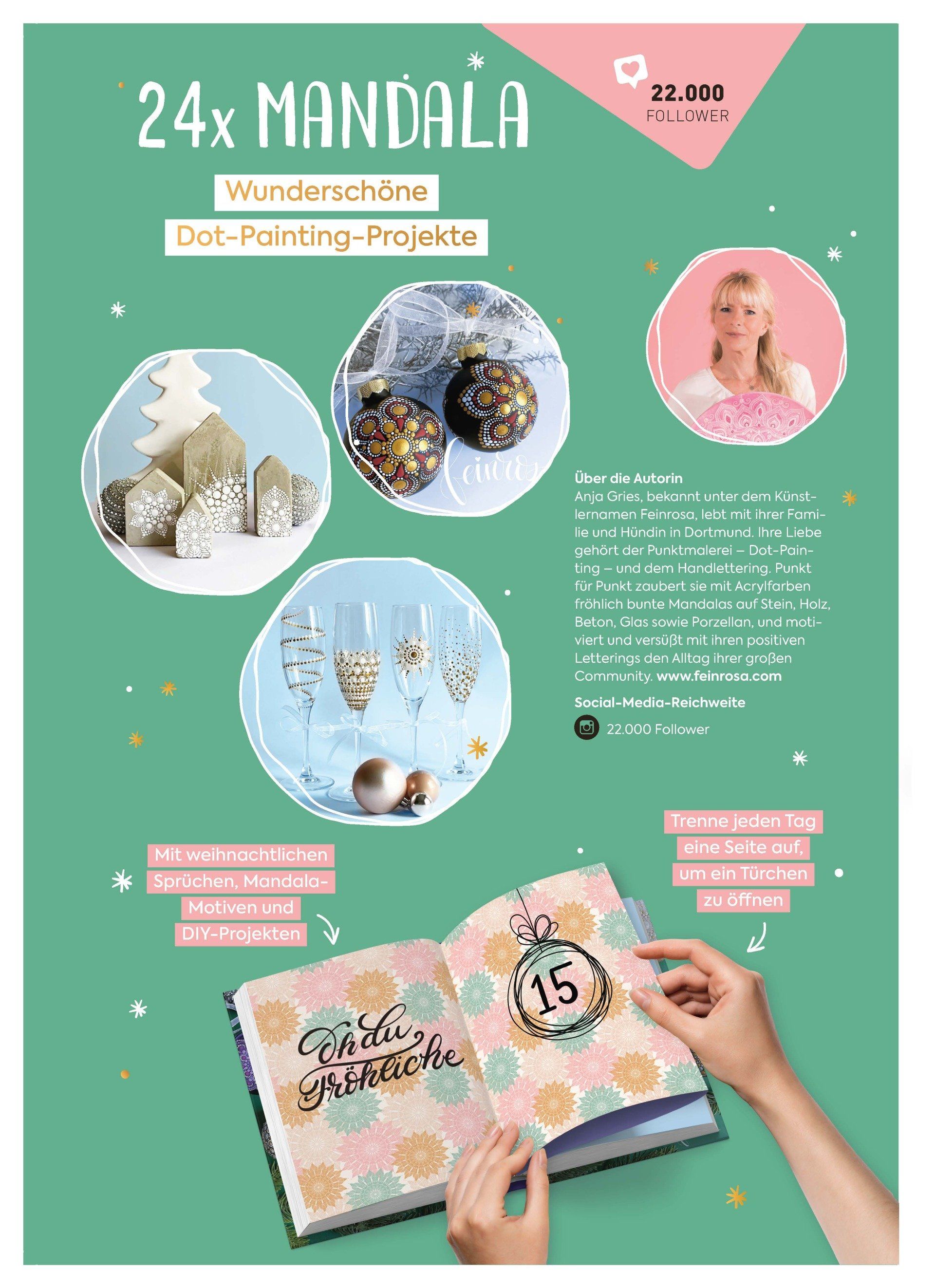 Wunderschöne DIY-Projekte für die Adventszeit. Das Adventskalenderbuch ist ein Must-Have für alle Mandala- und Dot-Painting-Fans.